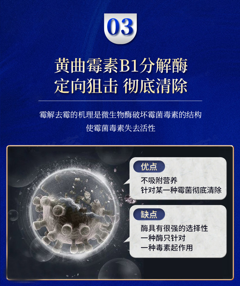 2、真菌產(chǎn)生的霉:真菌產(chǎn)生的霉可分解霉菌毒素,使霉菌毒素毒性基團失活。