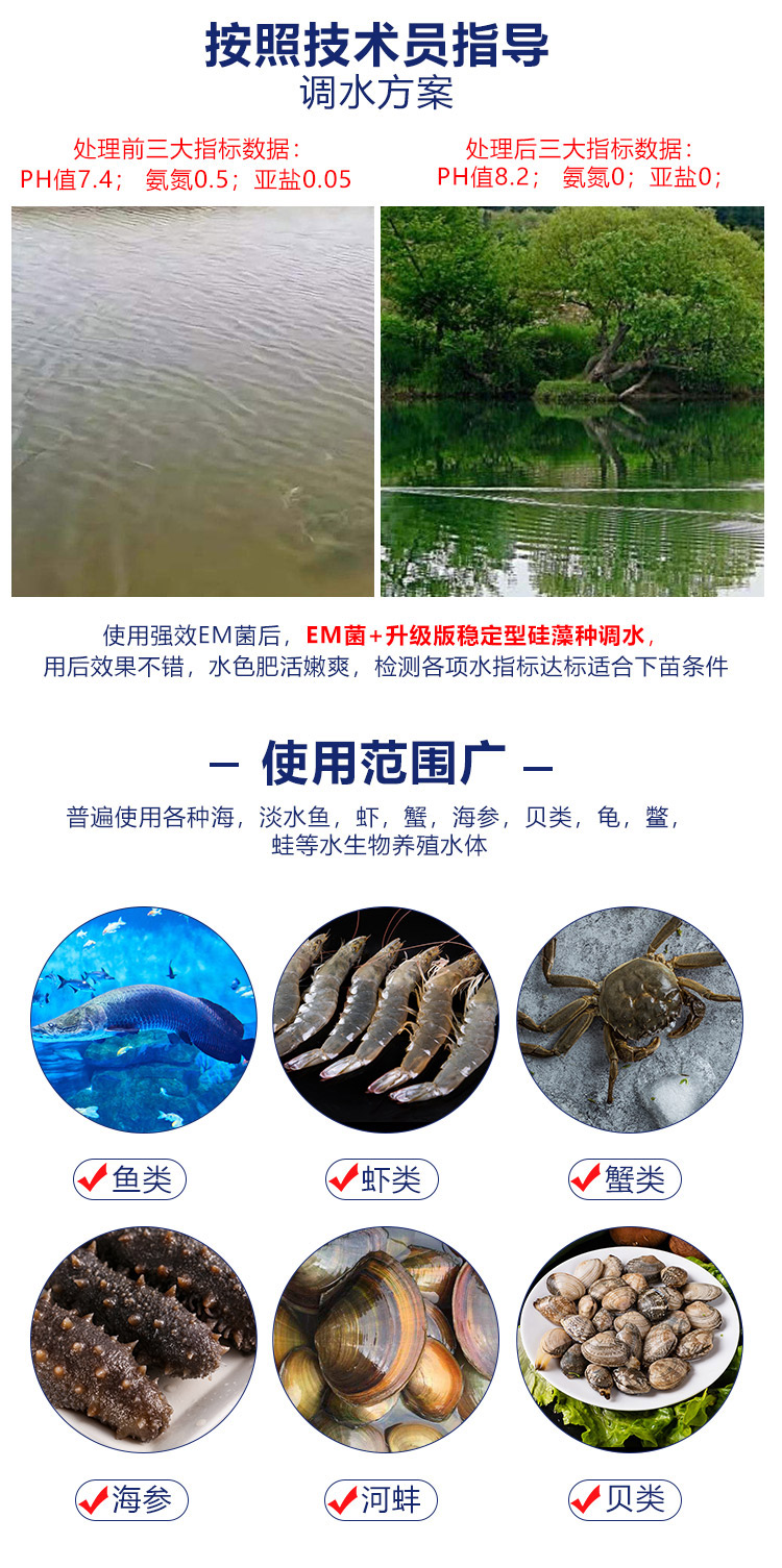 產品簡介:強效EM菌培水培菌改良池底調節水質 混合型飼料添加劑 每袋用十畝水面(每米深) 500g/袋