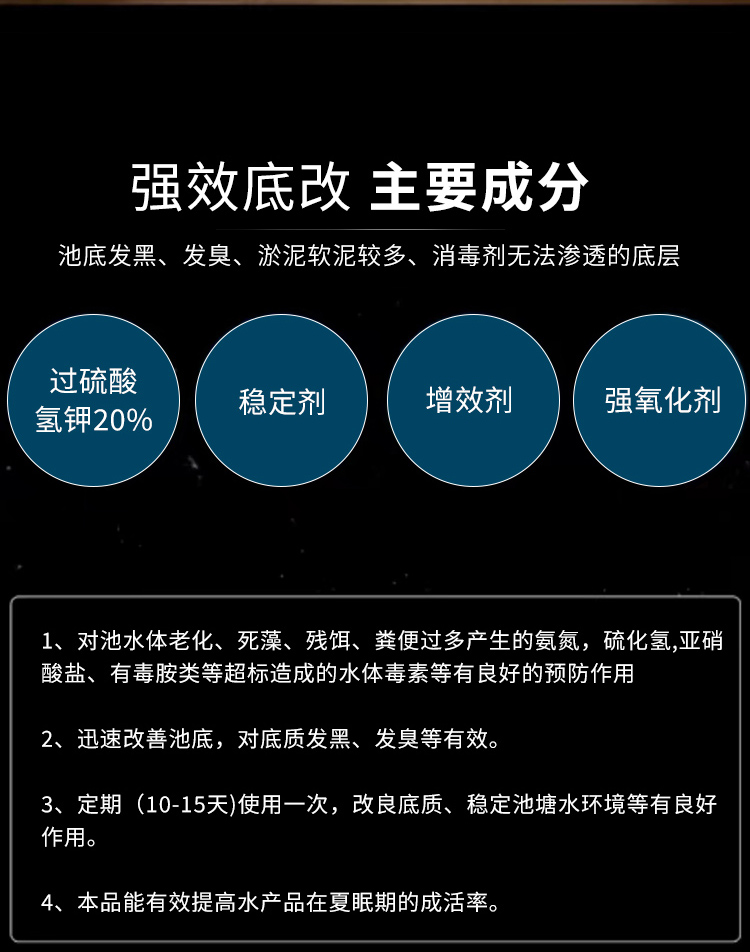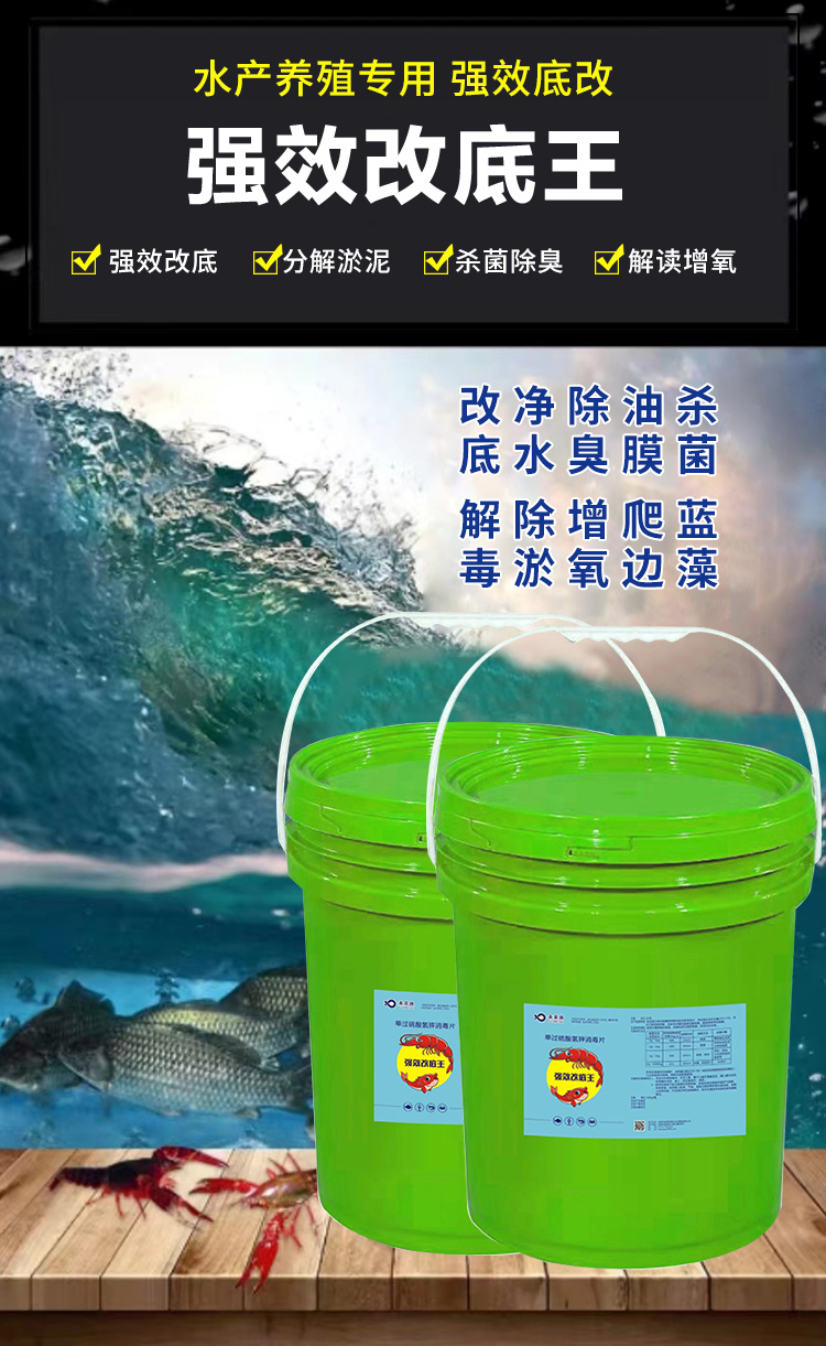 強效改底主要用于池底發(fā)黑 發(fā)愁 淤泥軟泥 消毒劑無法滲透到底層" />
